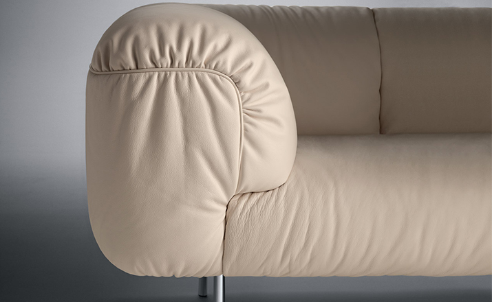 由意大利设计师Cini Boeri为当地家具品牌Poltrona Frau设计的软沙发Bebop,有两座及三座:Bebop 2-seater Sofa(比波普双座沙发)、Bebop 3-seater Sofa(比波普三座沙发),简洁圆润的设计线形,天鹅绒般柔软的舒适坐垫,底座和靠背框架采用山毛榉木,扶手则为白杨木,再覆以Pelle Frau皮革,沙发腿为镀铬钢管,看上去简洁高贵,优雅低调,关键是放在哪个环境下都不突兀,速配率超高。