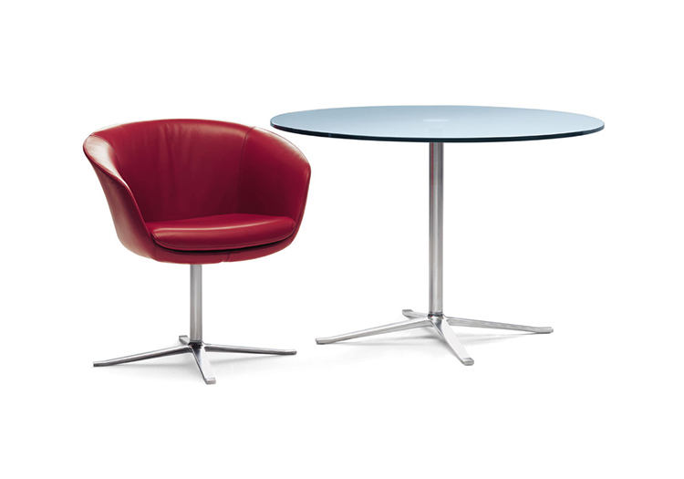 这是一张能提供豪华舒适感的软垫扶手椅。其轻柔的扶手,舒适的靠背,构成了线条迷人外形。依靠其细长的支架,椅子可以很随意的转动。同时与脚架类型相同的X茶几相配套。