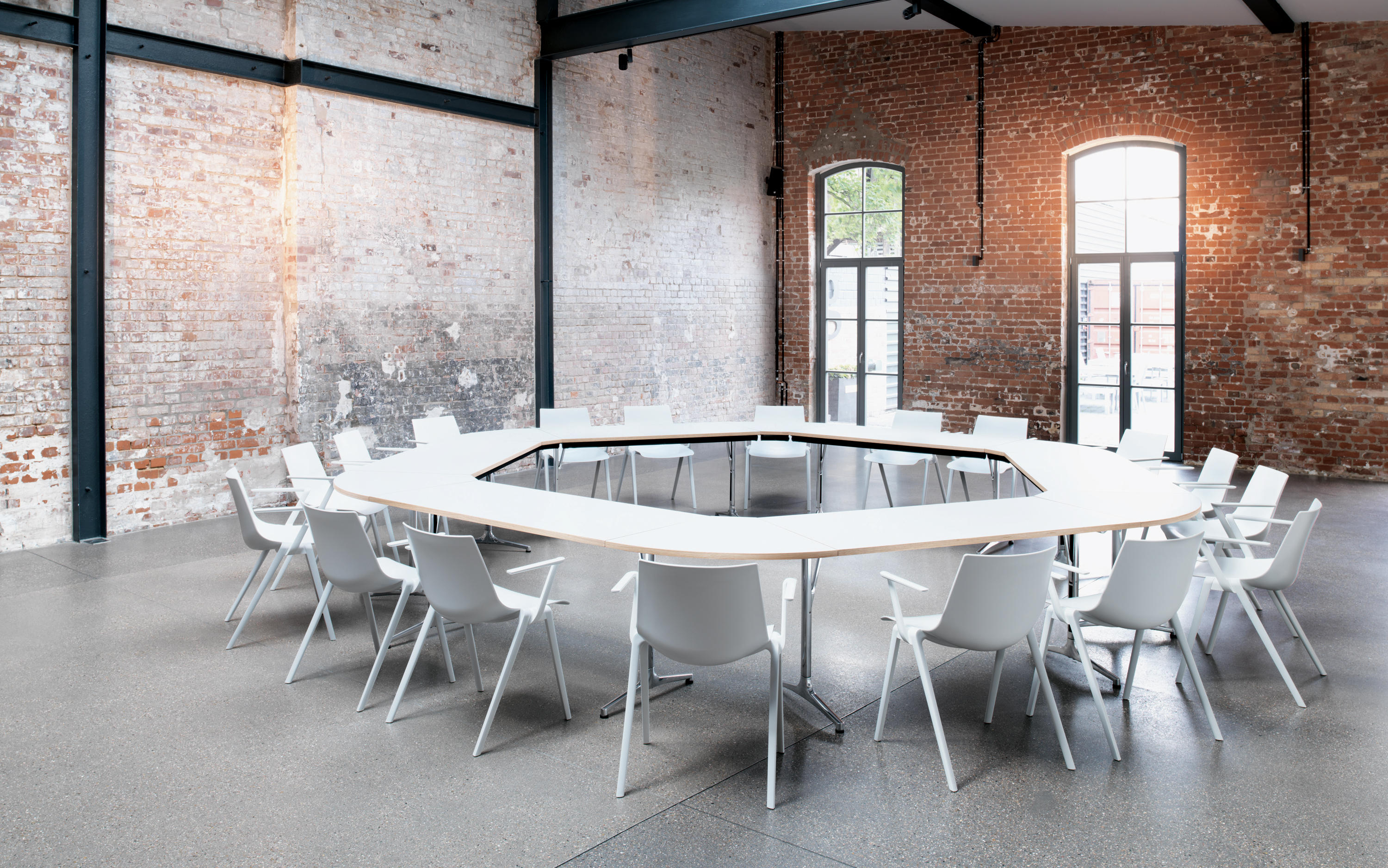六种颜色,四种装饰类型,以及无扶手的型号,为一系列不同的功能和设计理念创造了48种基本类型,多用途设施、食堂、研讨室、会议区或合作空间的选择所有类型都。所有类型都可以自由堆叠,最多可以堆叠十六张椅子。
