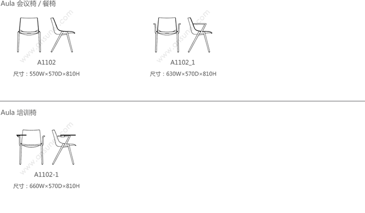 Aula 会议椅/培训椅 系列尺寸/示意图