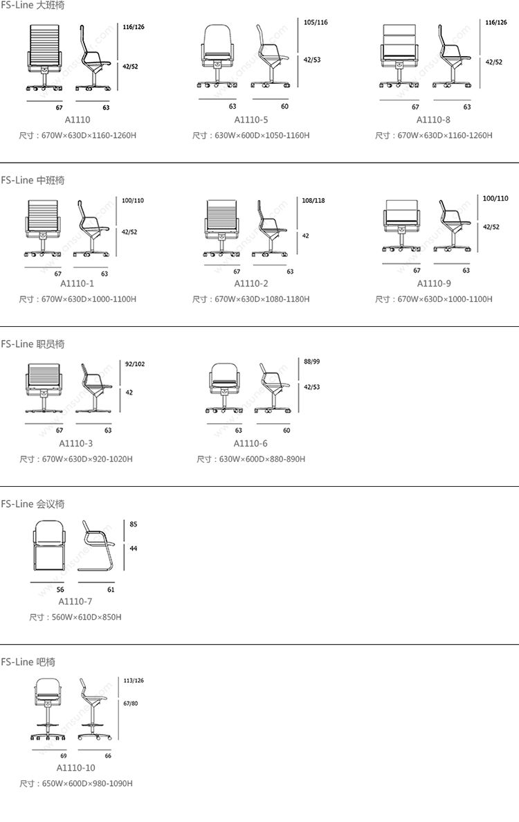 FS-Line 220/92 大班椅 系列尺寸/示意图