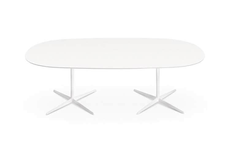 带粉末涂层铝制4向底座和顶部的桌子,白色压花MDF(厚2.5 cm)或层压Fenix(厚2.6 cm)。身高:74厘米。
