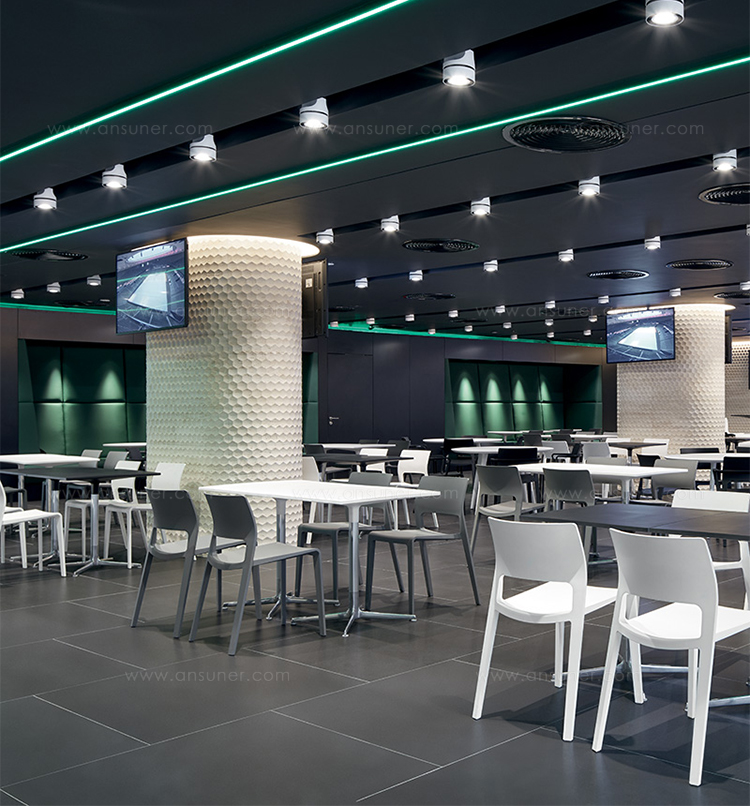 有四种高度(36.4,50,74和105厘米)可供选择,圆形和方形顶部有各种尺寸。 四星级底座采用闪亮或白色涂层铝制成。