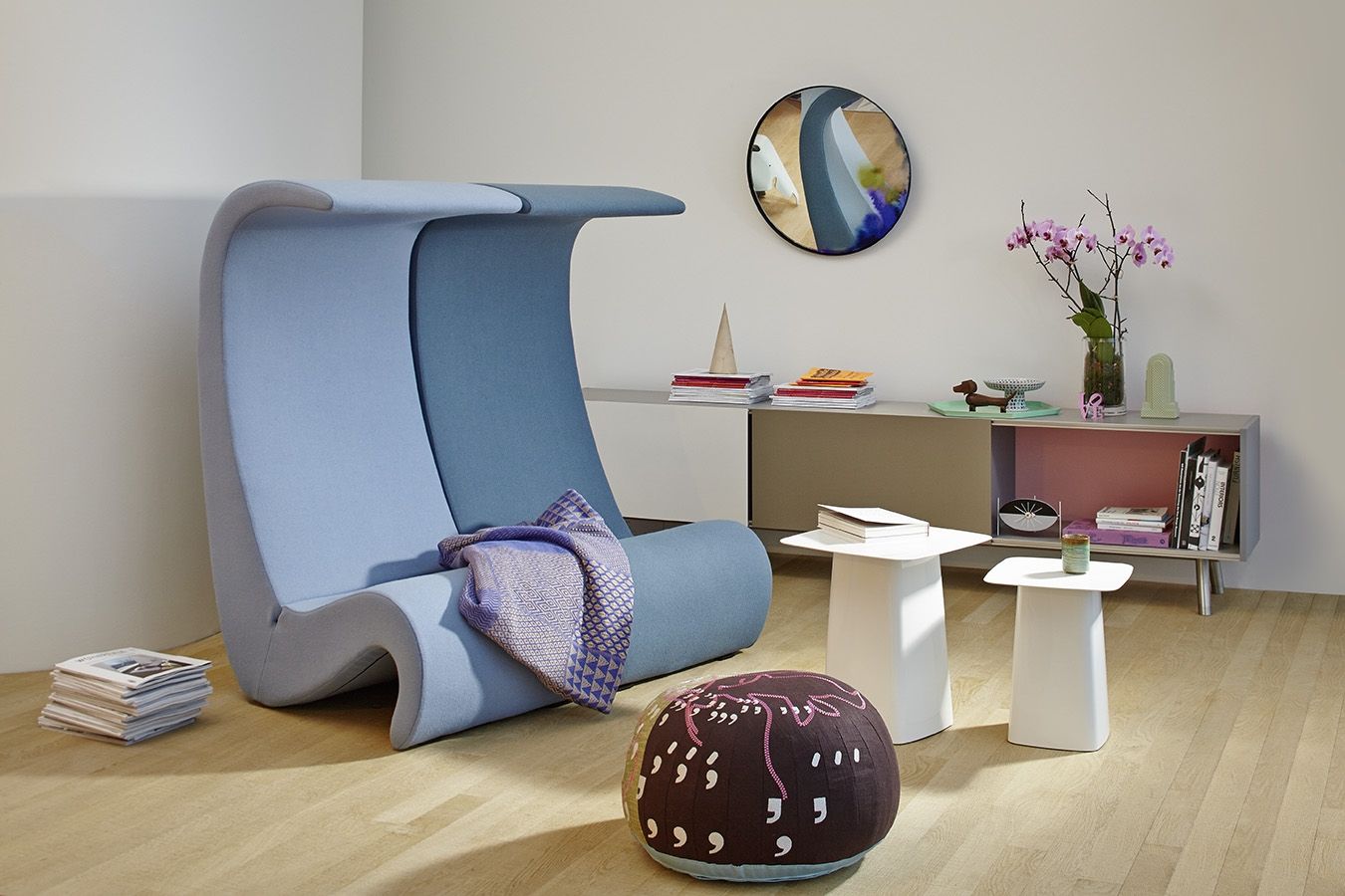 Ronan和Erwan Bouroullec的木制侧桌的细长顶部有一个轻微弯曲的唇部,使它们看起来优雅,几乎是日本风格。 轻便的偶尔桌子有三种尺寸,天然橡木,深色橡木或胡桃木贴面。