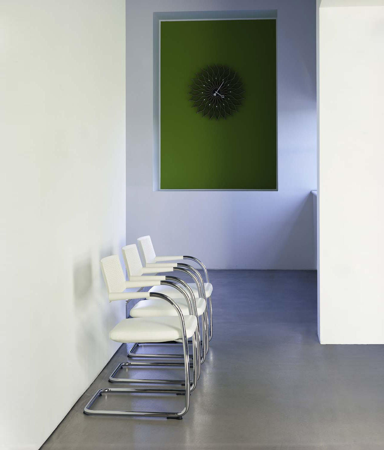 信仰进步和日益增长的经济繁荣是1950年左右美国生活方式的核心方面。一切似乎都有可能,人们努力做到“现代”。 为了将现代设计融入美国家庭,乔治·尼尔森构思了各种日常用品:灯具,钟表和其他家居饰品。 直到20世纪70年代,尼尔森办公室为家庭创造了许多不同的物品,包括泡泡灯和球钟,它们成为了本世纪中期现代设计的象征。