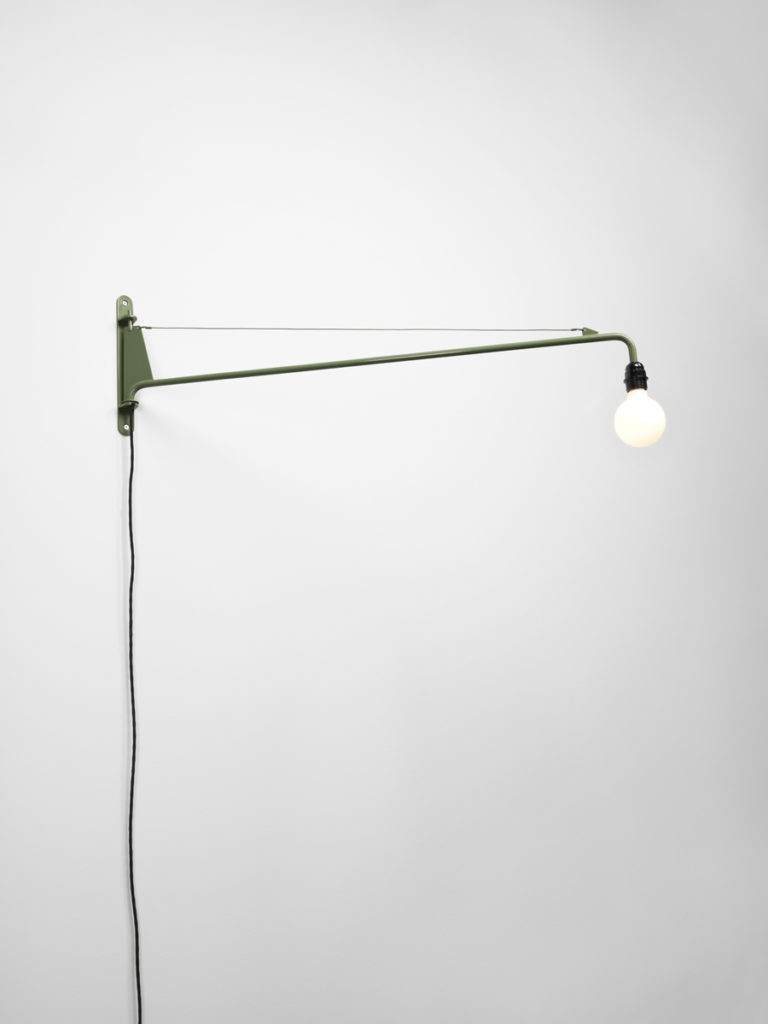 Potence壁灯是JeanProuvé的纯粹杰作之一。 减少了必需品 - 一个灯泡和一个旋转壁挂 - 长摆臂壁灯由粉末涂层管状钢制成,带有山毛榉木手柄。 灯由调光器控制,并配有灯泡。