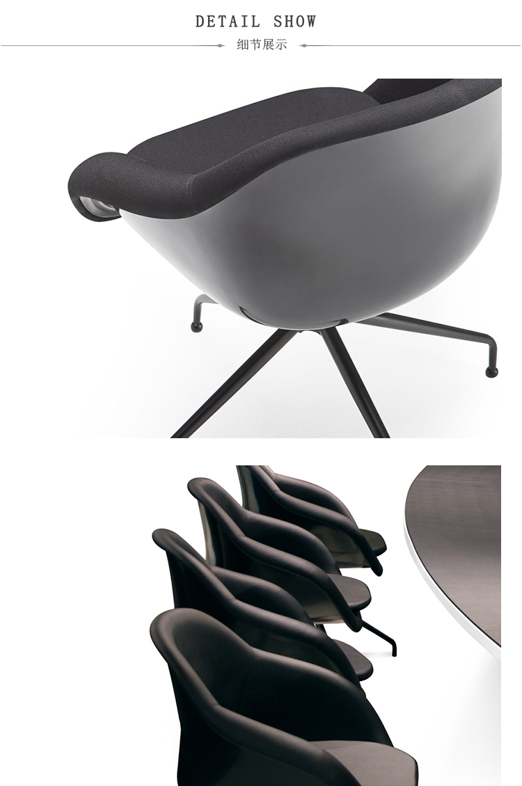 旋转扶手椅。双层成型玻璃纤维芯,无软垫靠背。软垫和胶合内表面。四脚金属脚,不锈钢。表面处理:金属底座采用抛光铬或漆面处理。成型芯为白色或黑色。室内装潢TUNDRA或EXTREM PLUS,技术面料种类繁多。