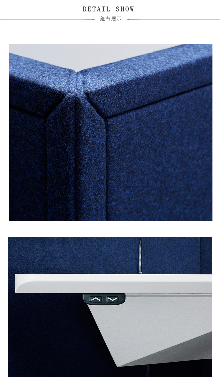 My Hive与其他工作站的区别在于它对细节的关注程度如何。Poul Christiansen不再使用腿部,而是将桌面整合到50毫米深的吸音屏幕中,从而释放空间。调节高度的机制隐藏在拉链后面。在桌子下面,有一个智能电缆盒。