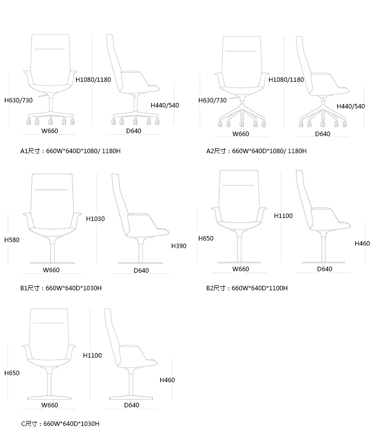 UNO 中班椅/会议椅 系列尺寸/示意图