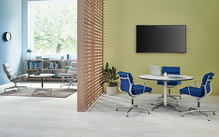 Charles与RayEames夫妇是20世纪最有影响力的设计师,卓越的设计涵盖了家具、建筑、影像与平面设计。他们从二次世界大战中美国海军的实验计画中学习经验并发展可谓是现今工业中使用模铸胶合版的先锋,这对设计界的超级夫妇档自1940年参与了由MOMA举办的有机家具设计大赛,自今已有近百件他们的作品被各大博物馆所永久典藏。Eames® Soft Pad Executive Chair(伊姆斯软包大班椅)是夫妻俩1958年设计的,是在全铝系列的基础上发展的另一系列Eames产品。舒适系列在全铝的椅架上增加了皮革制的柔软坐垫和靠背,高级铝合金制作,压模五星脚,可旋转。背垫和坐垫,采用西皮,具有透气性强,内部填充高密度定型绵,不易变形,不老化,依人体坐姿,符合人体工学,耐水及对人体无害等优势。椅子扶手选用优质电镀铝合金扶手,手感舒适,永久不生锈。转椅底盘为多功能底盘,可以保护使用者长时间坐用腿部健康,且作为高度可多定位调节。气压棒采用的气杆是正规厂家出产的外贸气杆,每一根气杆都有钢印,经过严格SGS检测的才可出厂,旋转、升降自如基本无声响,使用寿命长,可承受250kg,可升降数万次,将椅面调至与膝盖同高时,使用者坐下后双脚跟可垂直平放于地上,且大腿与地面平行,最符合人体工学理论,使用者长期久坐,也不想疲惫。办公椅脚为铝合金材质永久不生锈、承受能力强,安全更放心。椅子脚轮采用优质电镀片脚轮,耐用而美观,可以随意变换位置,贴心更方便,具有防震及防松脱,让椅子的安全性能更加可靠。