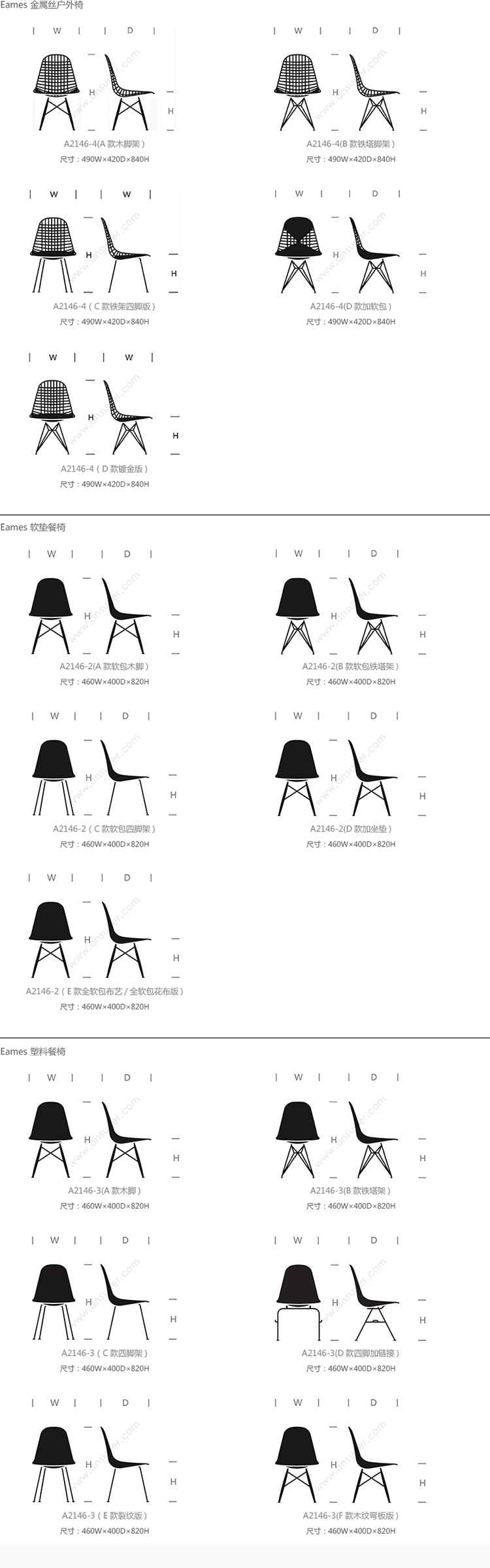 Eames® 系列尺寸/示意图