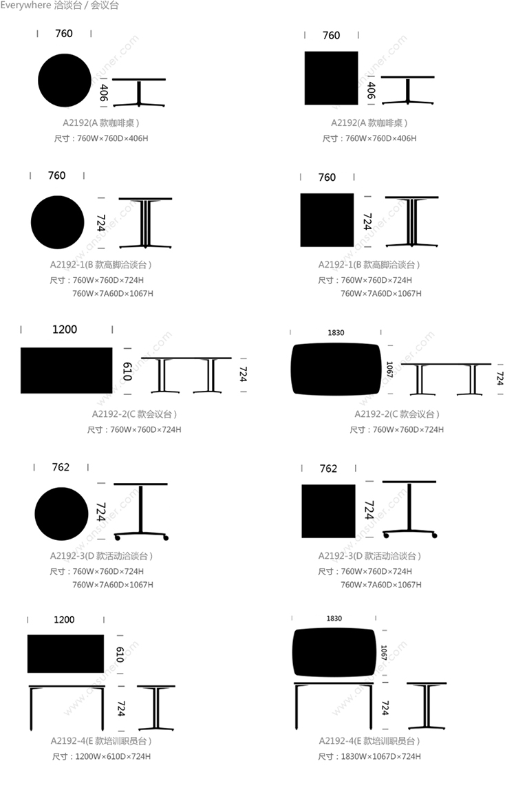 Everywhere 系列尺寸/示意图