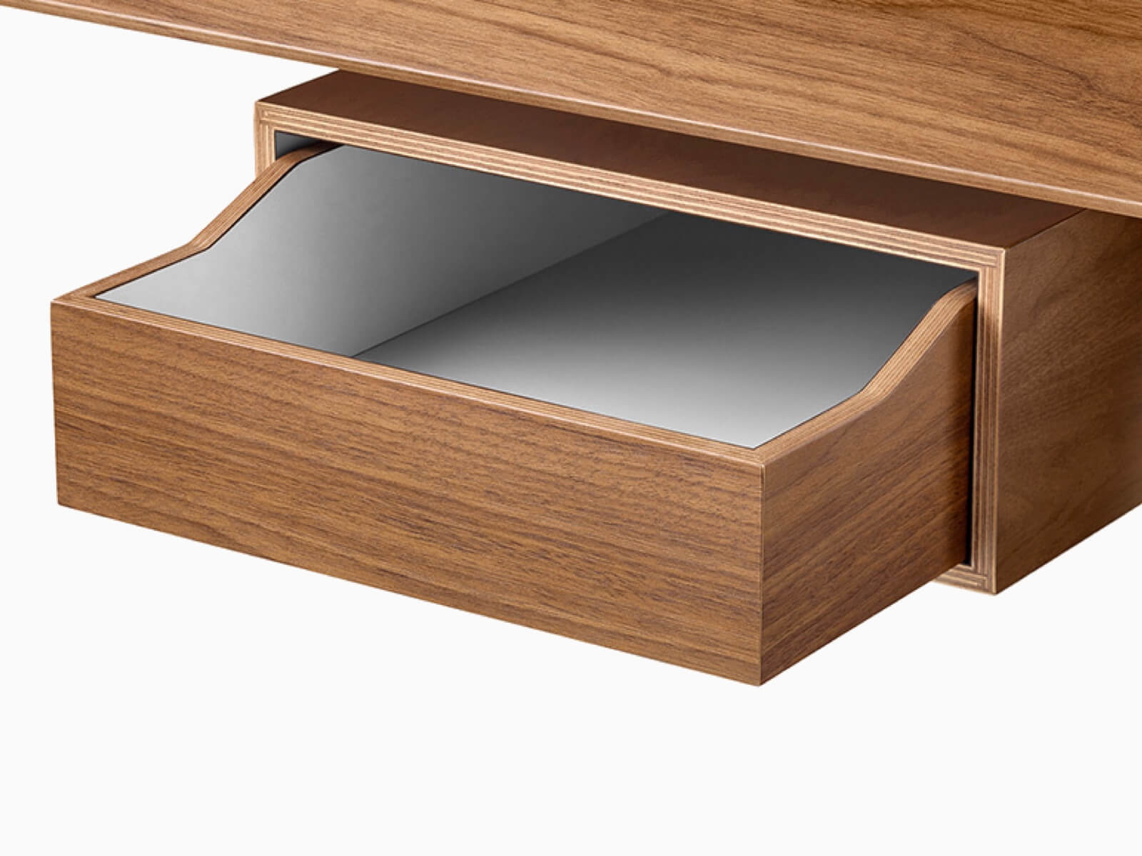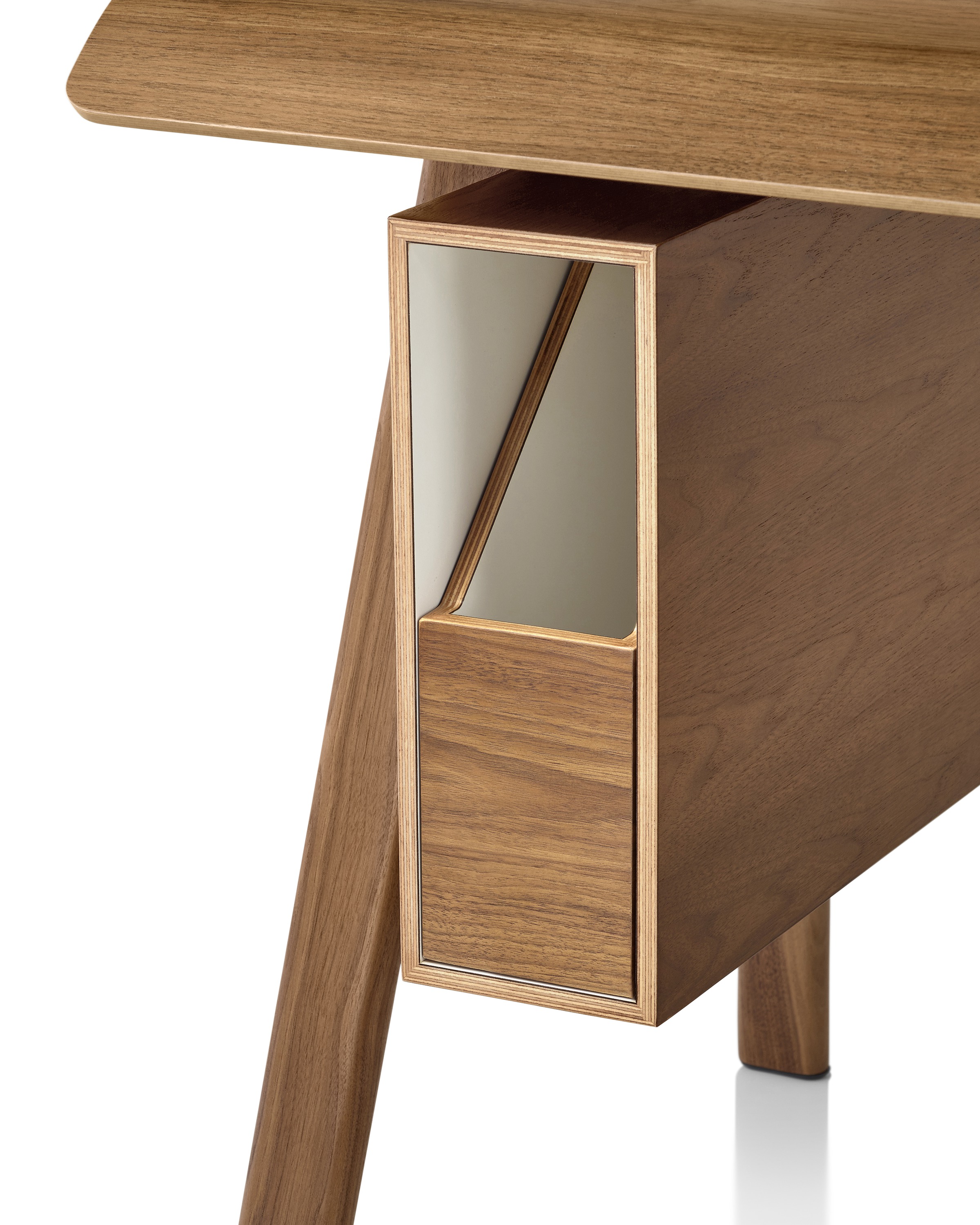 没有存储部件,Distil就是一张优雅的桌子。无论在竖直方向还是水平方向加上存储部件,Distil就变成了办公桌。通过巧妙的设计,使设备和充电器触手可及而又位于视线之外,Distil衬有层压板的存储单元安装在左侧或右侧。可拆卸的内置抽屉使桌面的面积在“盒中”增加了一倍,天鹅绒底面确保物品不会损坏内饰面。
