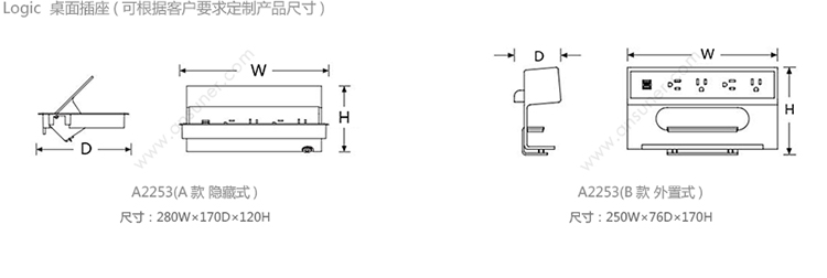 Logic 桌面插座 系列尺寸/示意图