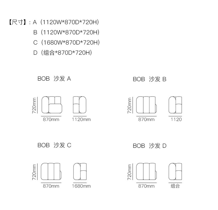 BOB 沙发 系列尺寸/示意图
