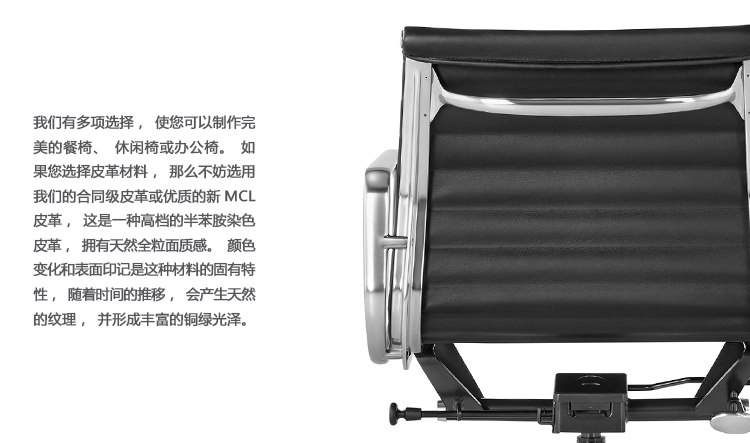Charles与RayEames夫妇是20世纪最有影响力的设计师,卓越的设计涵盖了家具、建筑、影像与平面设计。他们从二次世界大战中美国海军的实验计画中学习经验并发展可谓是现今工业中使用模铸胶合版的先锋,这对设计界的超级夫妇档自1940年参与了由MOMA举办的有机家具设计大赛,自今已有近百件他们的作品被各大博物馆所永久典藏。 Eames® Soft Pad Side Chair(伊姆斯软包会议椅)是夫妻俩1958年设计的,是在全铝系列的基础上发展的另一系列Eames产品。舒适系列在全铝的椅架上增加了皮革制的柔软坐垫和靠背,高级铝合金制作,压模四星脚,可旋转。背垫和坐垫,采用西皮,具有透气性强,内部填充高密度定型绵,不易变形,不老化,依人体坐姿,符合人体工学,耐水及对人体无害等优势。椅子扶手选用优质电镀铝合金扶手,手感舒适,永久不生锈。转椅底盘为多功能底盘,可以保护使用者长时间坐用腿部健康,且作为高度可多定位调节。气压棒采用的气杆是正规厂家出产的外贸气杆,每一根气杆都有钢印,经过严格SGS检测的才可出厂,旋转、升降自如基本无声响,使用寿命长,可承受250kg,可升降数万次,将椅面调至与膝盖同高时,使用者坐下后双脚跟可垂直平放于地上,且大腿与地面平行,最符合人体工学理论,使用者长期久坐,也不想疲惫。办公椅脚为铝合金材质永久不生锈、承受能力强,安全更放心。椅子脚轮采用优质电镀片脚轮,耐用而美观,可以随意变换位置,贴心更方便,具有防震及防松脱,让椅子的安全性能更加可靠。