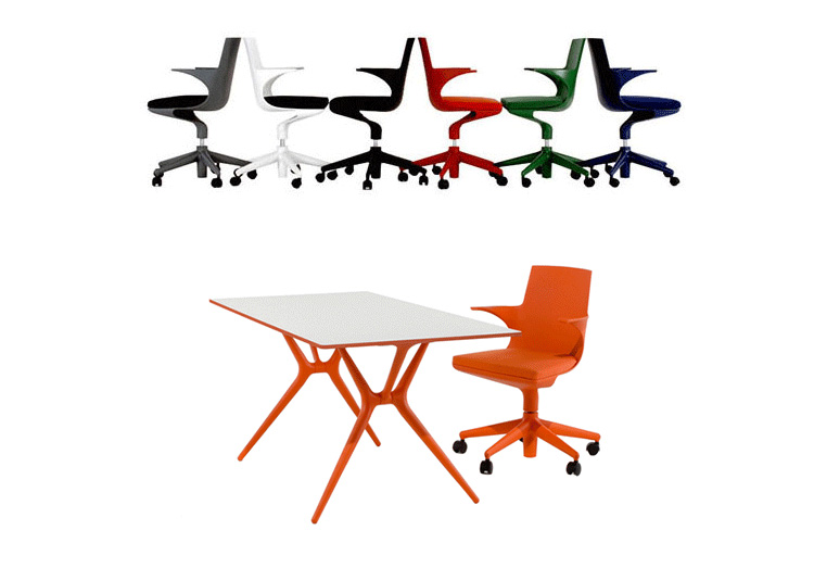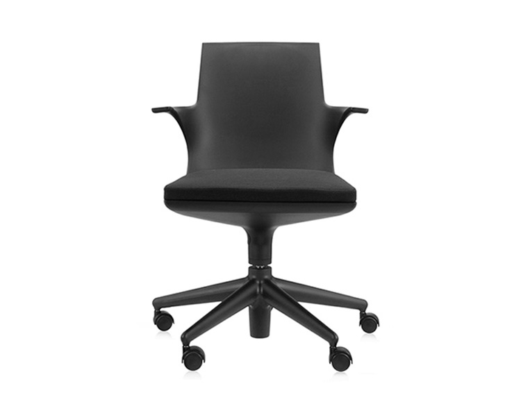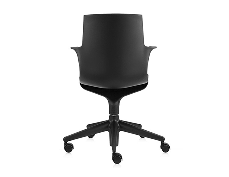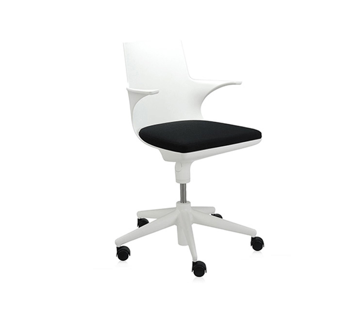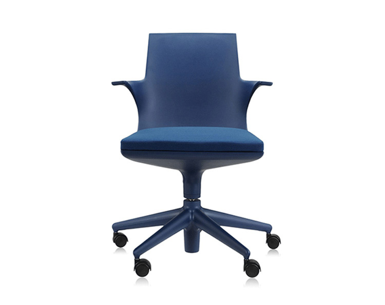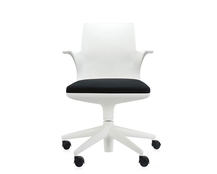 Spoon Chair(汤匙椅)是由意大利设计师Antonio Citterio于2002年为Kartell公司设计的,纤细弯曲的线条勾勒出类似于勺状的外型,配置两个舒适的扶手。此凳的创新之处在于连接座身与凳腿的一个支撑部分,其主要依靠一个由塑胶材料制成的弹性弯曲装置,其可以抵抗重量所带来的压迫与张力;另一个支撑是一个把手的形状,其安放在凳腿的下部,是一个可调节的气压泵装置。因此,其可以在56-76cm之间进行上下调节。Spoon Chair(汤匙椅)是一个将工业科技运用到设计领域的具体实例,其座身、凳腿及底座都是由多种颜色的热塑性塑胶材料制成,中间的茎干(只有当凳子升到最高位置时才会看到)是由阳极氧化铝制成。其颜色分为:白色、黑色、红色、银灰色等。Spoon Chair(汤匙椅)适用于多种不同的环境使用:家庭、办公室、酒吧、时尚餐厅等。