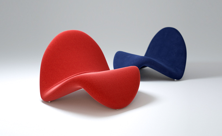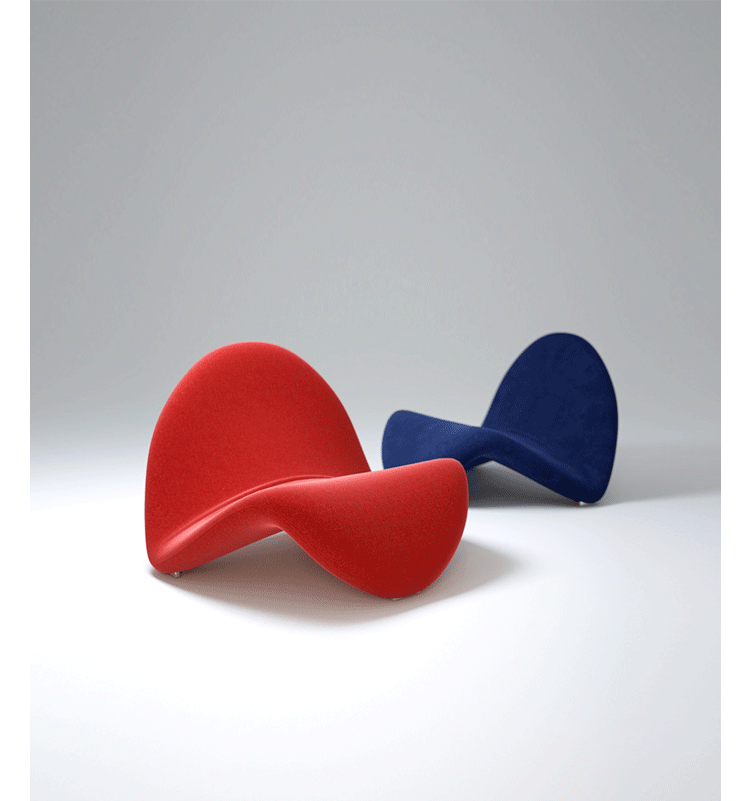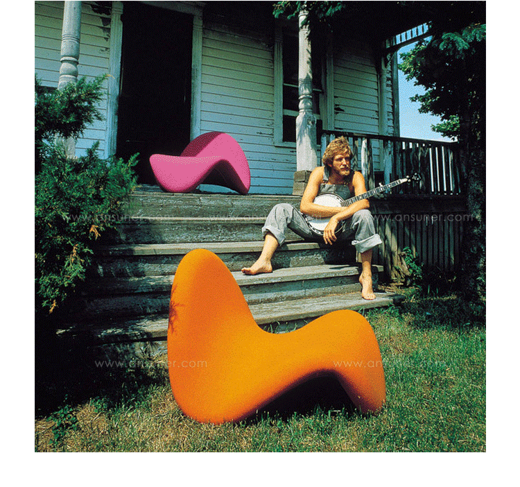 皮埃尔·波林(Pierre Paulin),一位在法国设计界享誉盛名半个世纪之久的设计师,以奇形怪状的椅子设计而闻名世界。他所设计的家具堪比艺术品,被多家享誉世界的博物馆收藏,他的家具至今仍装点着巴黎的爱丽舍宫,法国总统萨科齐称赞他:“将家具设计变成一种艺术形式”。1967年,paulin设计了著名的舌头椅(Tongue),由Artifort公司制造,编号为F577,椅子有多种颜色和非常流畅的线条,可以叠加组合,最重要的是形体的流畅,在室内设计中使用给人的感觉是窃窃私语的椅子。这款椅子采用玻璃纤维的构造,以金属为骨架,外面覆以弹性面料,并且带有三个防护脚,以防止磨损。“舌椅”成为pop艺术最有代表性的作品之一。
