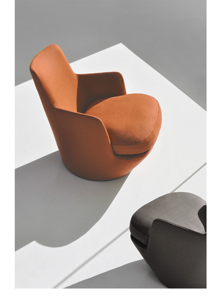 Low Turn Armchair(掉头扶手椅)是Niels Bendtsen设计的低背转椅,可360度旋转。简洁利落的几何线条赋予Low Turn Armchair雅致的摩登感,进口玻璃钢压膜椅身、进口羊绒布、软包内部填充进口高弹力海绵,提供最佳的舒适度。椅身织布可拆卸,方便清洗。