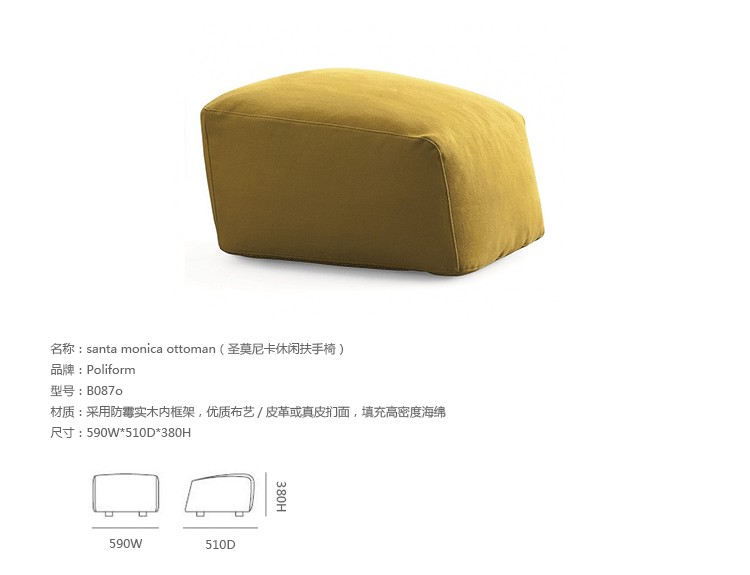 Poliform,Pouf Santa Monica Lounge:A very enveloping and comfortable pouf,which founds its singularity in the seasonal coverings.Its style is casual and chic;casual for its comfort and unformal character and chic for the wide range of coverings recalling Poliform's universe.Santa Monica is a "mix and match"of fabric,cushions and accessories.