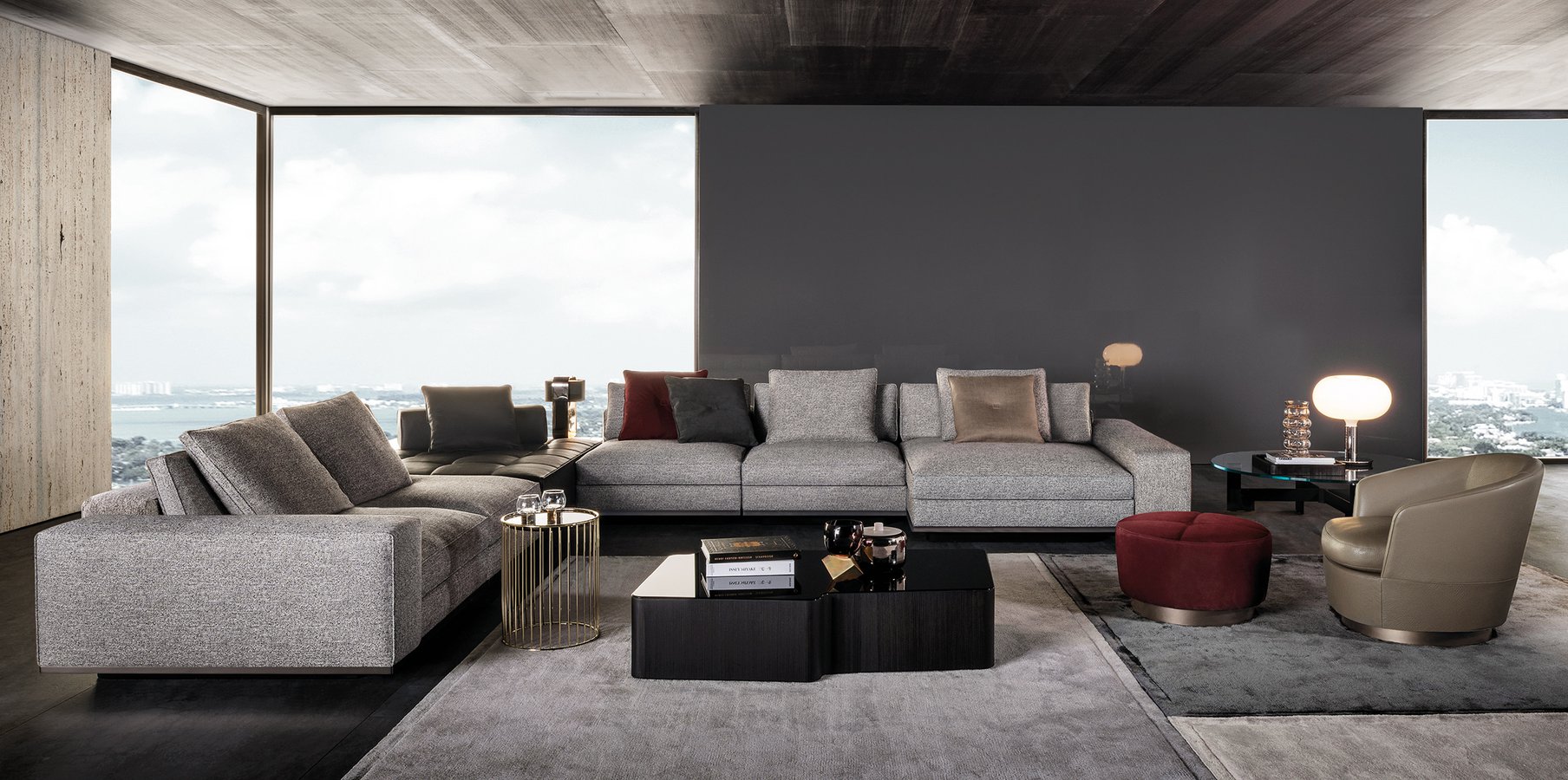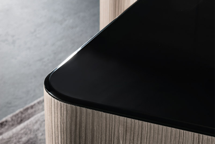 浅灰色与亮光灰褐色的落叶松木基座搭配不同材质的嵌装台面,打造出与众不同的对比效果:Calacatta大理石的华贵气质与玻璃釉的纵深感,配合木材的温润质感。 不同寻常的造型和迷人的材质组合为这款卧室家具配件平添一份独特的魅力,Lou系列所特有的美学图样也呈现其中。