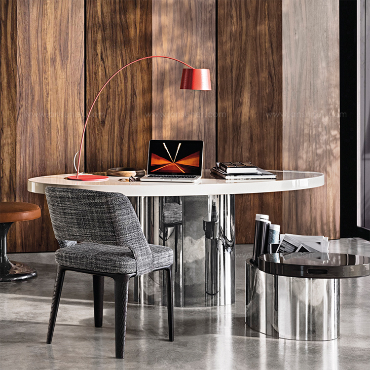 欧文斯座椅与家族中同名的扶手椅一样,将当代设计的精髓与传统的积淀融合在一起,以自身的技术诀窍为基础,体现出展望未来的特质。座椅除了有充满经典风情的Moka色白蜡木版本可供选择以外,还有令人眼花缭乱的设计方案,椅腿可以采用Pewter色漆面的铸铝材质,搭配Minotti Studio独家设计的色调。