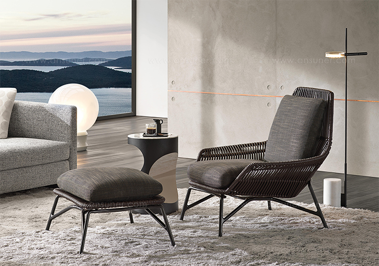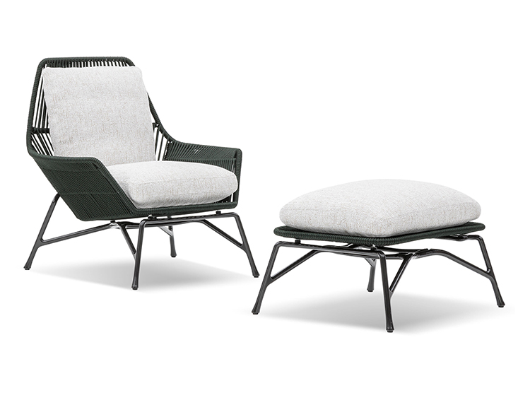 除去了2012年原版的填充物后,王子的“绳索”在室内展示了外壳的骨架,现在它的特点是由皮革覆盖的管状弦交织在一起。 设计灵感来自五十年代的美国现代主义,强调了锡色铝基通过复杂的压铸技术实现。扶手椅的柔软度由织物或皮革装饰的坐垫和靠垫突出。 米诺提产品的优势之一是对细节的剪裁讲究,这一点在圆形轮廓线的执行中得到了突出体现。圆形轮廓线的特点是贯穿整个皮革长度的独特接缝。王子的“绳索”室内有四种颜色——鸽灰色、灰色、烟草和深棕色——扶手椅可以有一个脚凳,上面有相同的风格标志。
