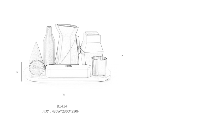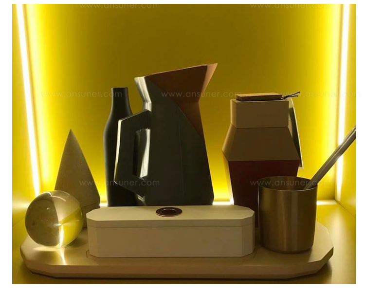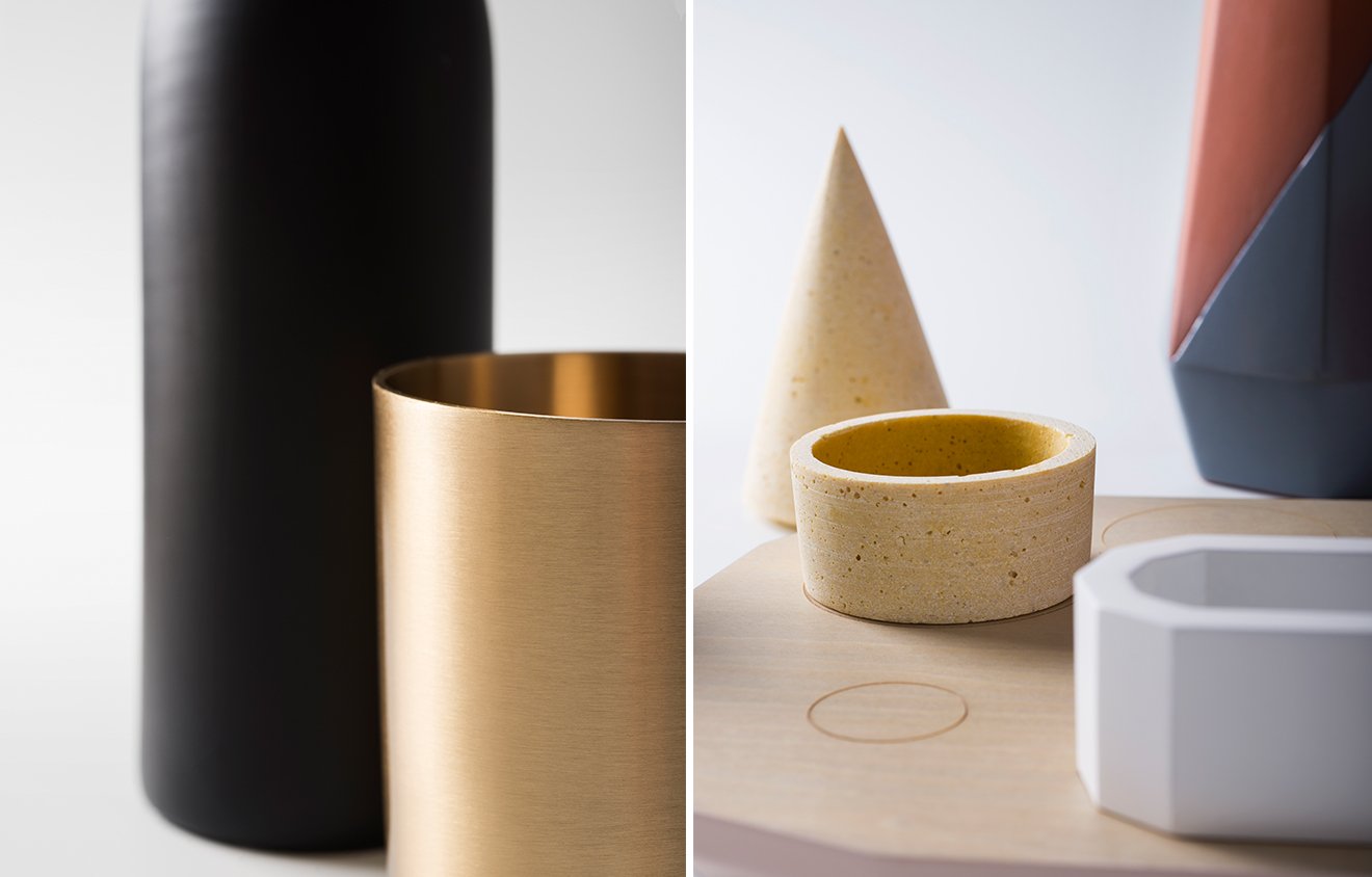 桌面集由一组对象组成,其特征在于使用不同的材料来创建不同的使用形式。 木材和软木的自然性与聚乙烯的当代性质相对应; 陶土的质地与玻璃和瓷器的精致混合。 具有几何形状和温暖的柔和色彩的花瓶,容器,玻璃和镇纸组合成功能性和装饰性。 桌子采用休闲和俏皮的色调。