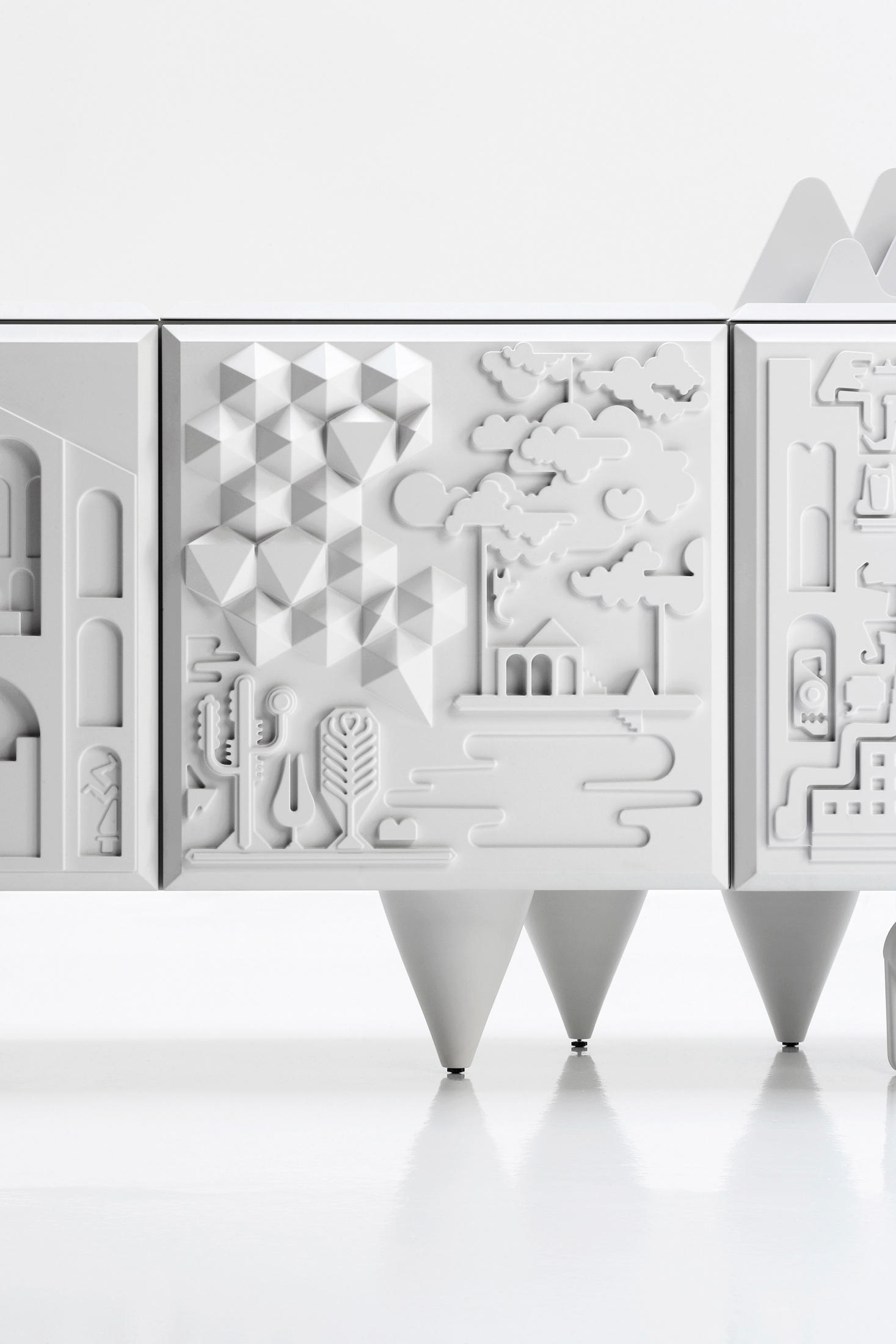 Antoine + Manuel设计了一件充满艺术和幻想的家具。黑色或白色MDF上漆的车身和搁板。整体式聚氨酯门的门,平顶和侧面。固体al木脚合为一体,用与门相同的颜色上漆和微纹理。很少有图形设计师(在这种情况下,是两个)进入家具设计领域。我们必须回溯很久才能找到它们这正是Antoine Audiau和Manuel Warosz所做的,这是一对非凡的巴黎图形艺术家,他们以Antoine + Manuel的名义签名。内阁Tout va Bien 他们为BD Barcelona设计公司推出的这个新系列而设计,它是应用艺术,象形文字,当代图形,幻想和乐观主义的令人惊讶的混合物。它的生产具有昨天的品质,却使用了当今的技术。颜色:白色和白色深灰色。