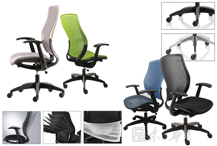 ※ 高弹力材质的塑胶背板,附有人体工学的腰靠设计,可随人体的活动巧妙变形,并同时提供均衡的身体支撑,保持嵴椎的曲线。尤其对下腰部位的支撑,更健康的解决了久坐的疲劳和不适。
