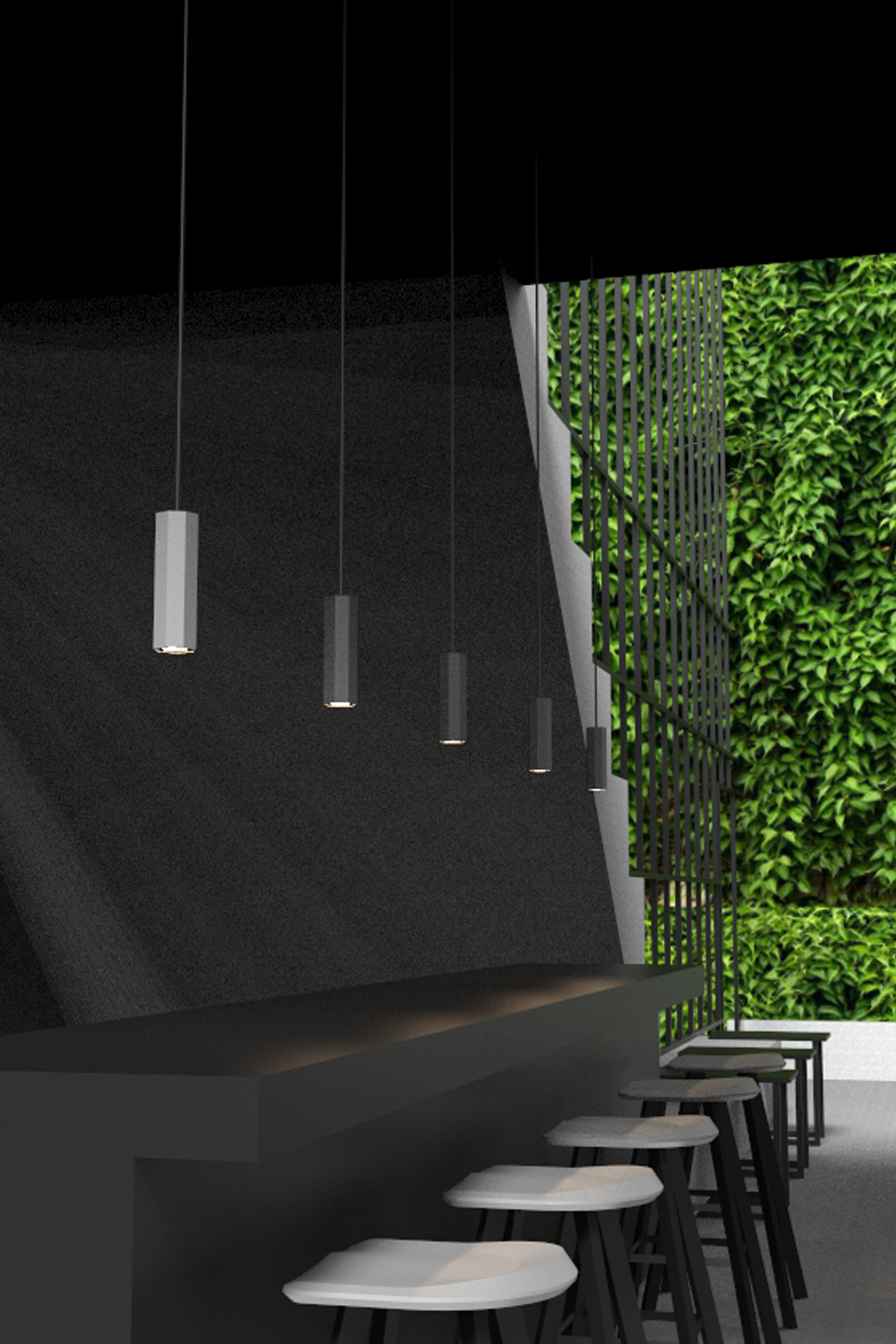 特点:轻薄/方便更换/精致/易搭配,聚光感适中,有八边形与圆形可选,分别适用于硬朗与柔和的空间,吧台/前台/餐桌下均合适的吊射灯。