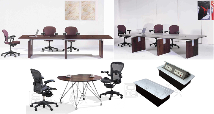 ※ 系列配套会议桌和洽谈桌的介绍:会议桌和班台都可以选择如图的手动线盒、电动线盒、以及毛刷翻盖线盒,适合你不同的办公需要,内部可配置动功能三插电源孔、网络接口、耳机音频接口、话筒接口、VGA接口,也可根据客户实际需要选择和定做。