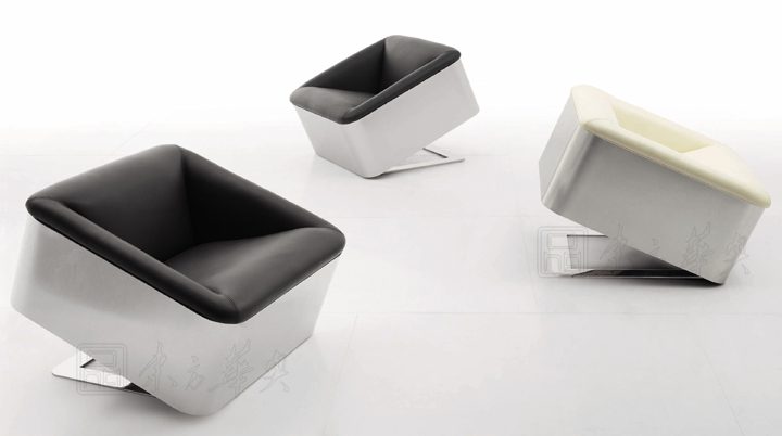 ※  上图我为单人位沙发,款式的独特设计,简单大方,不同于以往沙发的座位表现,它利用不锈钢的特性,支撑沙发向上倾仰,使沙发有一定的弧度,沙发靠背和扶手连接,同样的不规则弧度体现,现代化表现的淋漓尽致!