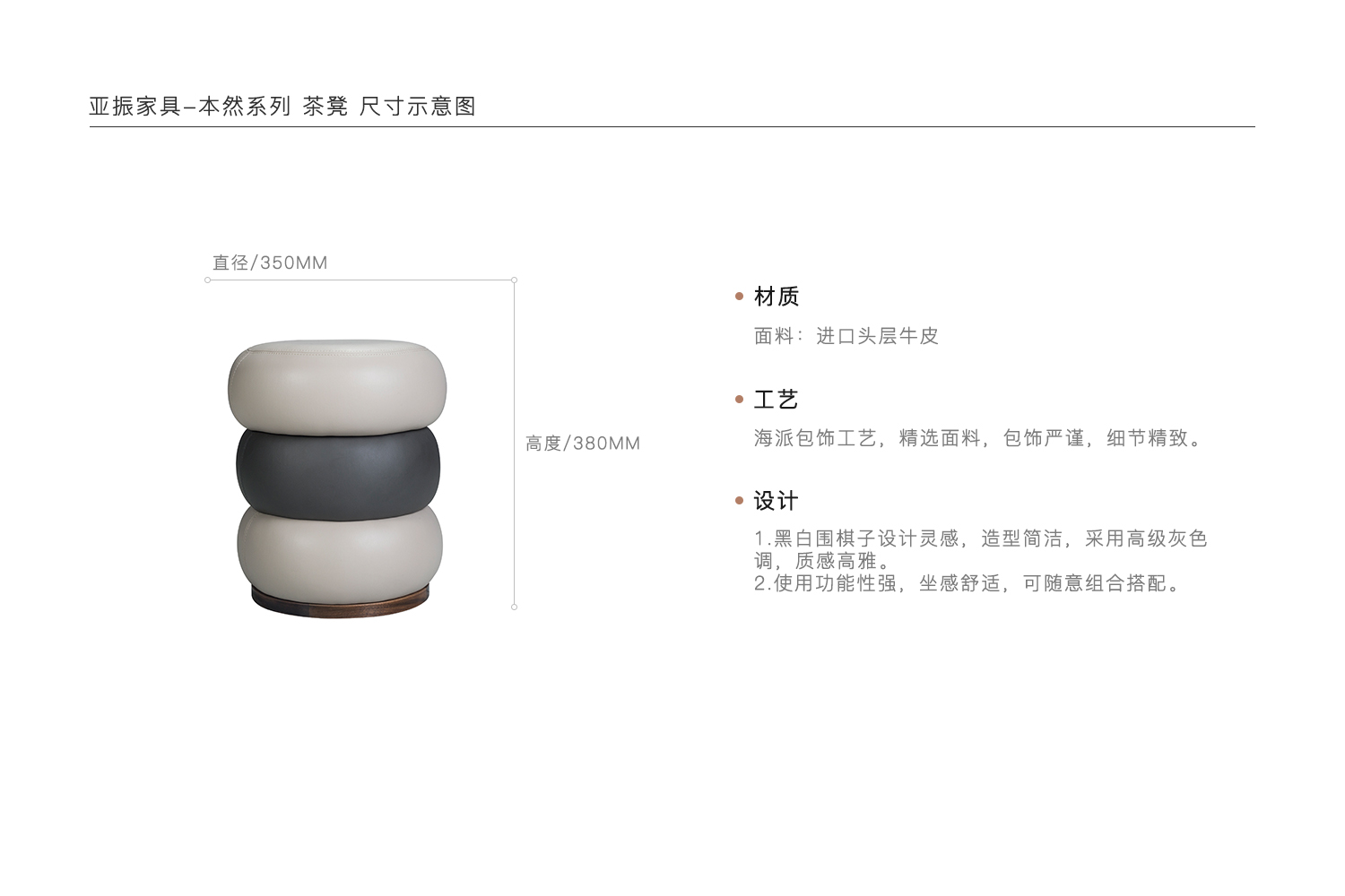 1.黑白围棋子设计灵感,造型简洁,采用高级灰色调,质感高雅。 2.使用功能性强,坐感舒适,可随意组合搭配。