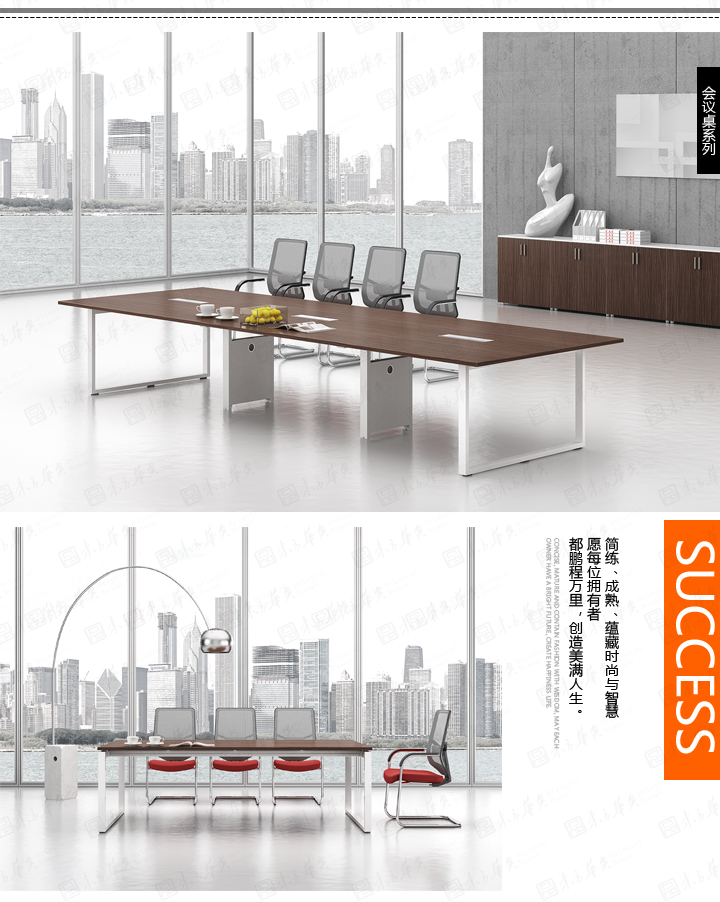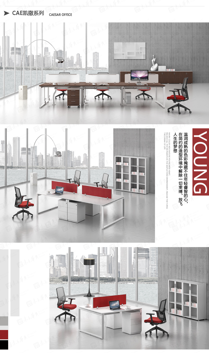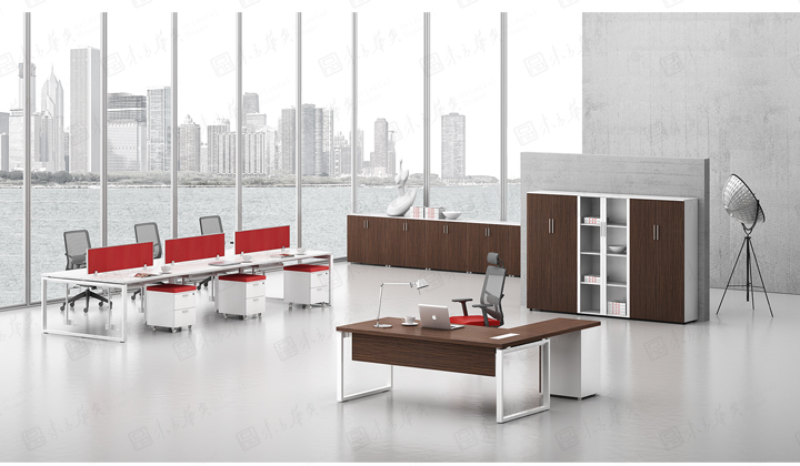 凯撒系列,源自德国的设计风格,糅合木的柔美与刚强的特质,深褐色的睿智理性与白色的纯净空白带来强烈的视觉对比。桌脚部位采用白漆方框金属支撑架,或是装饰或是必须,恰到好处地表现凯撒的艺术姿态。如此,简练高雅的设计,体现出东方华奥现代办公打造的高品位、个性化的办公方式。