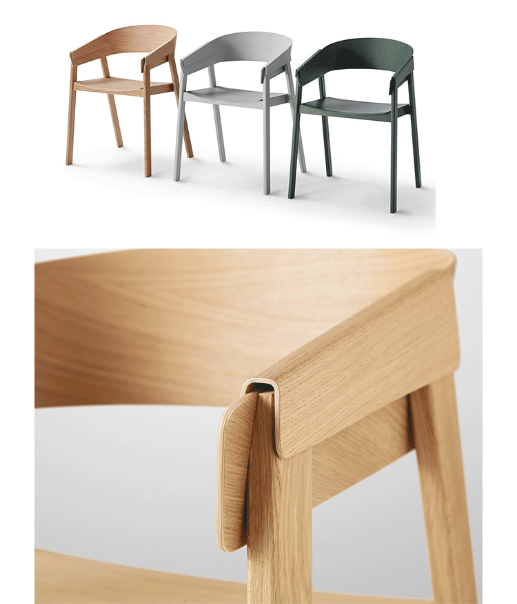 cover chair(封面椅)是经典木制扶手椅现代重新诠释,由著名设计师Thonas Bentcen设计。扶手的巧妙设计提供了舒适的工作感觉,水曲柳实木框架、靠背和座板为曲木弯板、坐垫加软包,无论用在家庭饭桌、书桌前,或者餐馆、酒店房间或任何其他公共场合都非常理想。