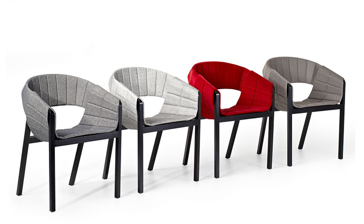 The armchair is a stylish piece of furniture that can change its appearance at will: the essential innovation of the armchair is its cushioning, which lies over the supporting structure like a ceiling. The precisely manufactured pieces of fabric are fastened with snap-buttons, which allows easy replacement and radical alternation of the chair's impact using colour changes. The base is made from minimal wood cross-sections and features the hallmark of Jörg Boner: an appearance that is both graceful and sturdy.
