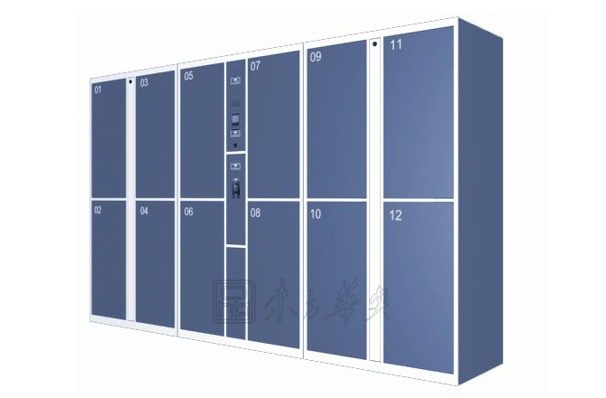 寄存柜柜体选用优质冷轧钢板,厚度不小于1.0mm,经冷加工成形后,用二氧化碳气体保护焊焊接装配而成,柜体结构坚固结实。柜体表面经除锈、除油、打磨、磷化处理后喷塑(不接受喷漆)。箱门背面增加纵向加强筋,提高箱门的防撞击能力。箱门两侧呈一定角度的弧线外形,增强箱门的防撞击能力,并且有效防止使用者因疏忽碰伤、磕伤。电控锁采用棘爪式结构,360度防撬、防插。