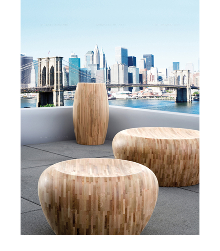 The Motley drums show innovation in function, technique and form.Small pieces of wood are knitted together with nger-joints into a large 12mm thick sheet(cedar).Together they make a solid block.The cedar drums are highly suitable for interior and exterior use.The birch drums are only suitable for indoor use.Table-seat-pedestal.