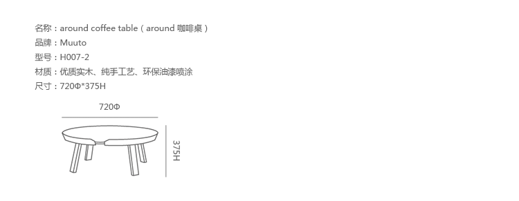 Around 边几/咖啡桌系列是丹麦设计师 Thomas Bentzen 2011 年发表的作品,结合简约外型与多样功能性,加高的桌缘设计减低桌面物品掉落的机会,是款相当平易近人的设计且容易搭配。设计师 Thomas Bentzen 在设计这款咖啡桌时说,希望可以寻求一种友好、优美的风格,这款小巧简单的咖啡桌很具有现代感,而且将不同尺寸多个组合在一起是个不错的选择。