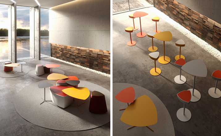 Kastel是一个在室内装饰领域极具影响力的公司,该公司具备高水平的综合生产能力,是一个充满活力的公司。Kastel公司产品多种多样,包括办公座椅,社区座椅和家庭座椅等等。Kastel在对人体工程学进行深刻研究之后,制定了现在的生产线,产品的设计以舒适为主,在生产过程中每一步都严格遵循这一宗旨,为客户提供高性能的产品,满足客户对舒适的基本要求。这也是Kastel公司的经营理念。kensho table(kensho桌)系列桌子采用不锈钢喷涂工艺、做工精湛、三角形脚架,整体造型像盛开的花朵一般,颜色可选黄色,橙色,白色等颜色,多张平凑在一起,宛若一个小小的花园,且与其他家居搭配非常完美和谐,集艺术性与功能性为一体。