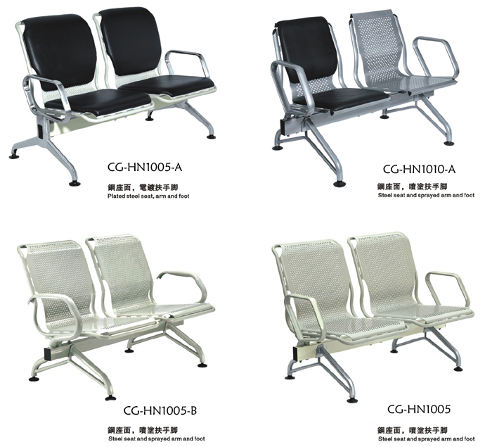 2、扶手、脚:采用优质钢管材经模具焊接成型,抛光,再在表面进行酸洗,除锈,磷化多重工序后进行环氧静电喷粉处理,防锈功能强大。