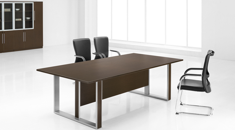 ※  上图为会议桌的侧部展示图,既传统又时尚,厚厚的桌面由同样厚度的拉板连接,增强台桌体的稳固!