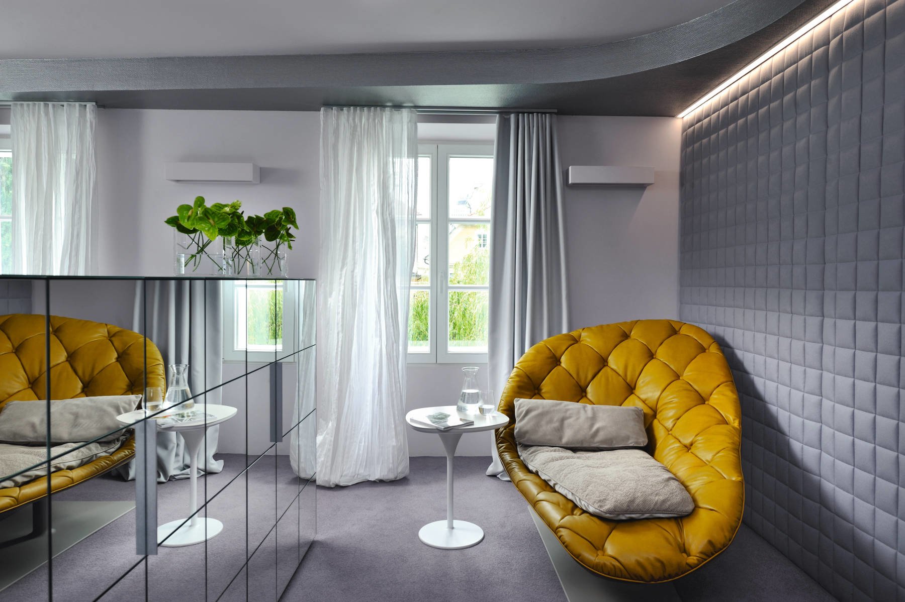 帕特丽夏·厄奎奥拉采用的是一种全新的旋转方式,革命性地改变了这一概念,她设计了一系列的产品,这些产品的形状看起来是液态的,就好像它们在框架上融化一样,以制造柔软的,舒适的,几乎随意的线条,这些布料和皮革都用按钉固定在外壳上。这些碎片似乎披着披在肩上的披巾,座椅上有各种重叠的软垫:几乎是对其覆盖层的设计、层叠的皮革和其他材料、颜色和面料类型的关注。这是一种奢侈的拼贴,当它穿过时,就会给人一种游牧式的全球精神。