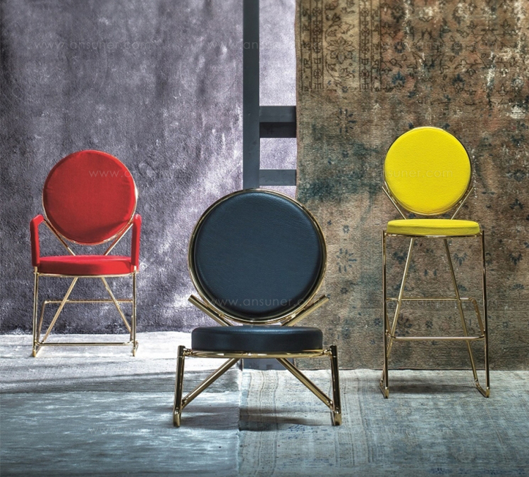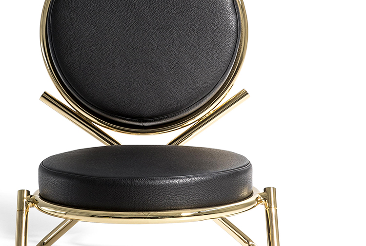 两个圆圈,两个基本模块接枝到本领域的结构几何结构中,去除了灵感,公开地传达了最大限度简化的趋势。这是高品质工业生产的前奏,这是一种优雅的经济,由镀铬钢框架提供的可能性表达,将设计结构设计成一个完整的座位家庭。这样,一把椅子和一把凳子就诞生了,没有扶手,加上一个小小的双座沙发,这是一种精致的正式进化,由良好的品味和阶级所决定。这是一种回归秩序,向一种同时奢华和合成的语言过渡。