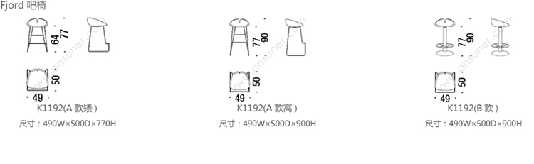 Fjord 吧椅 系列尺寸/示意图