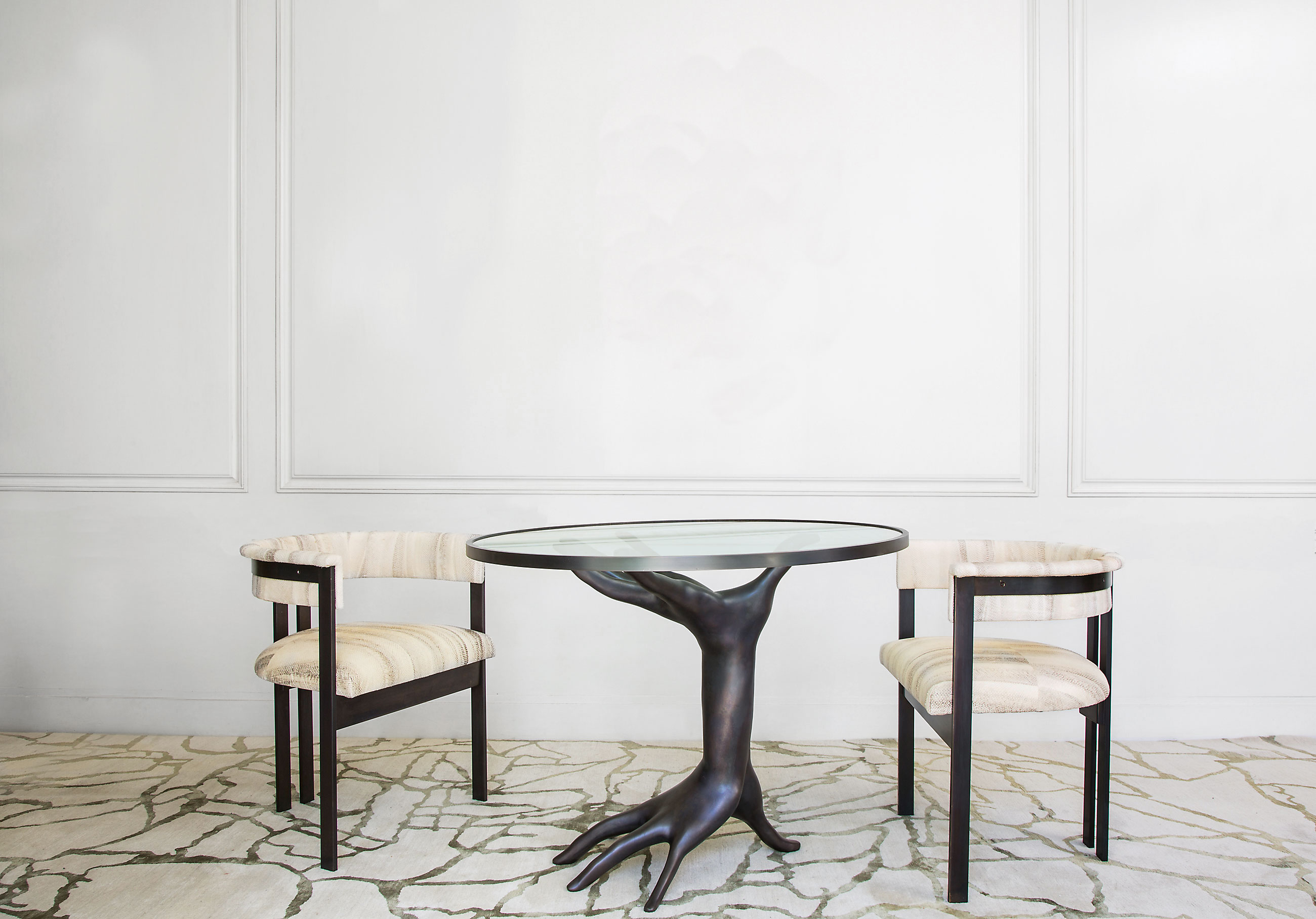 豪华雕塑的Dichotomy桌是一款令人惊叹的独特陈列桌,灵感来自古典的比喻装饰。 底座采用青铜铸造,手工精心打磨。 钢化玻璃顶部采用匹配的青铜饰边。 直径36英寸,这张桌子是一个完美的入口,或强调一个正式的座位群。 Dichotomy桌有青铜或油擦青铜饰面。