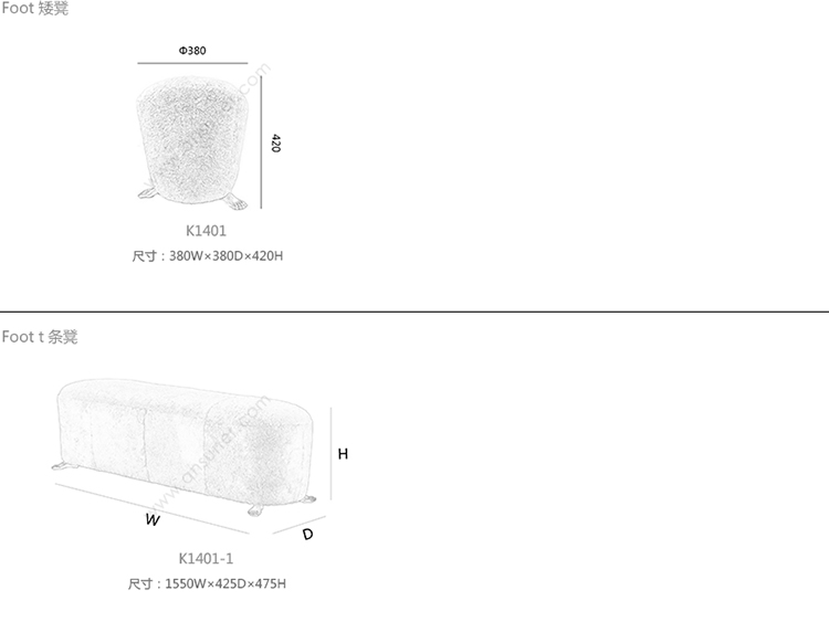 Foot 矮凳 系列尺寸/示意图