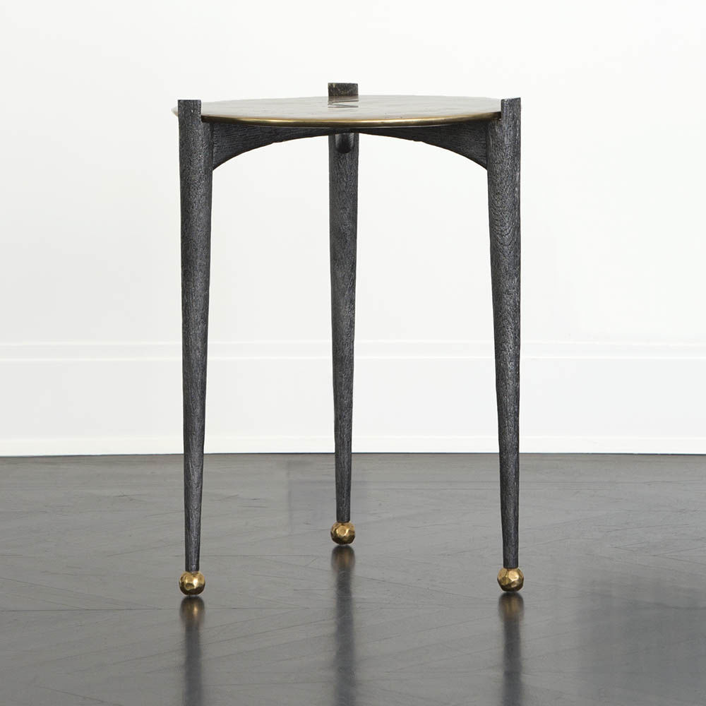 可能是我们所有边几中最复杂的,Garcon桌子有三条腿用黑色铝铸造,逐渐变成黄铜球脚。 腿部的纹理就像雕刻的木头和坚固的青铜顶部,带有抛光的青铜色,具有手工锻造的雕塑品质。