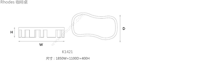 Rhodes 咖啡桌 系列尺寸/示意图